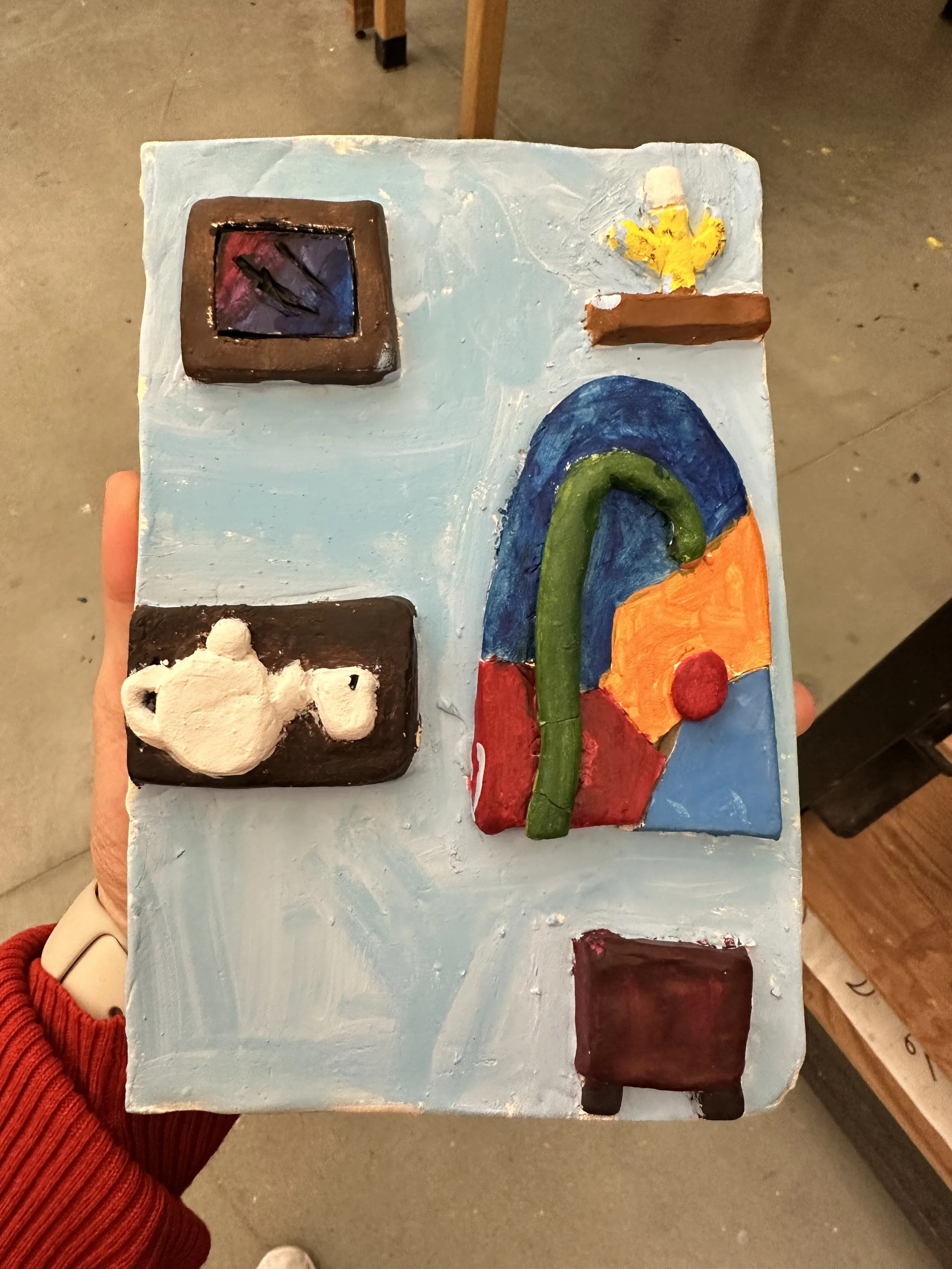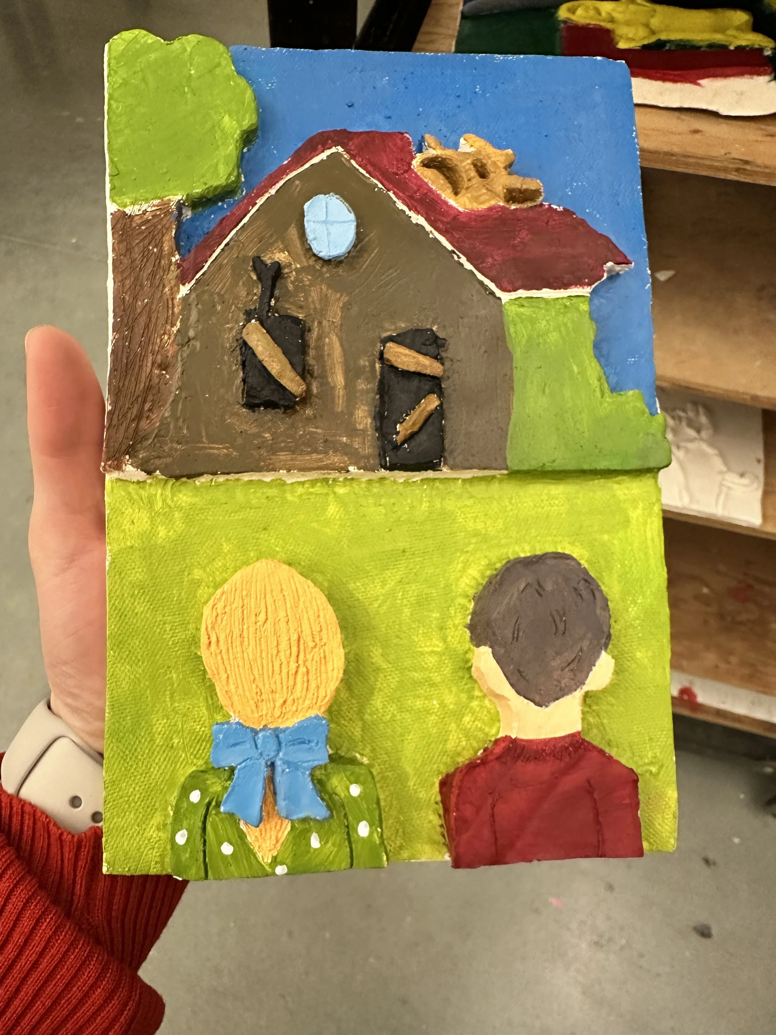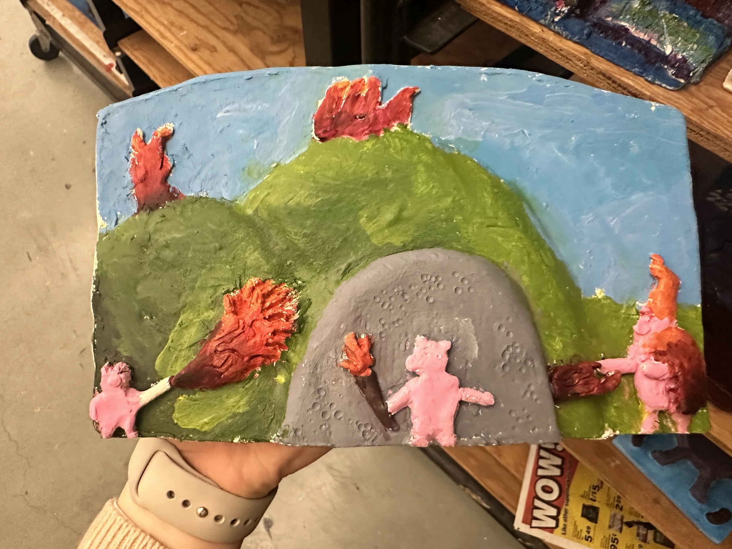 The second lesson I implemented was of my own making, and the medium was clay. The students were making additive relief clay sculptures that retold a fairy tale with a twist. This focused on strengthening students' creative thinking skills, and additive technique in clay. I was really excited about this lesson because it was the first I had written and implemented in a classroom, and I had learned a lot from my last lesson.