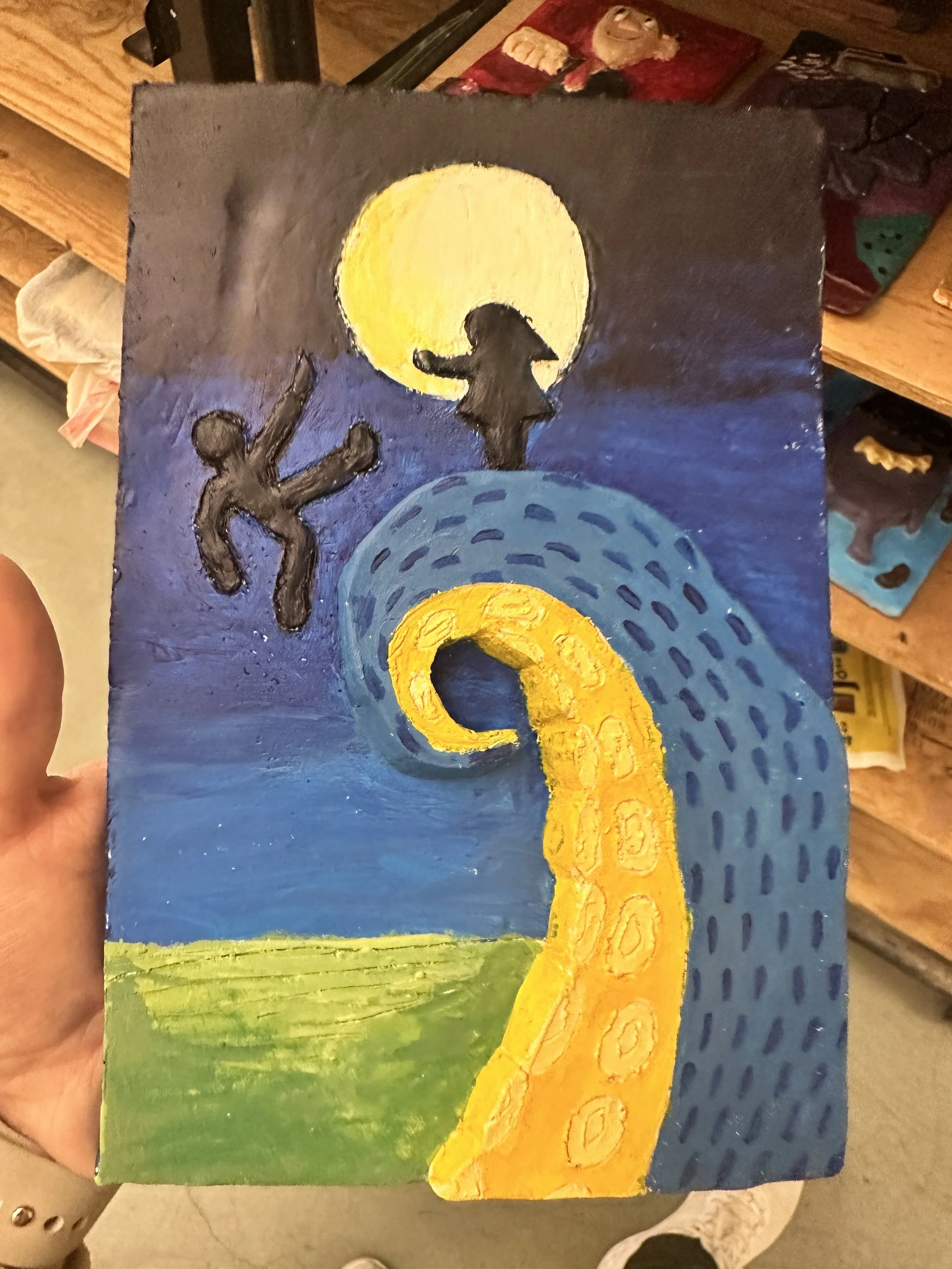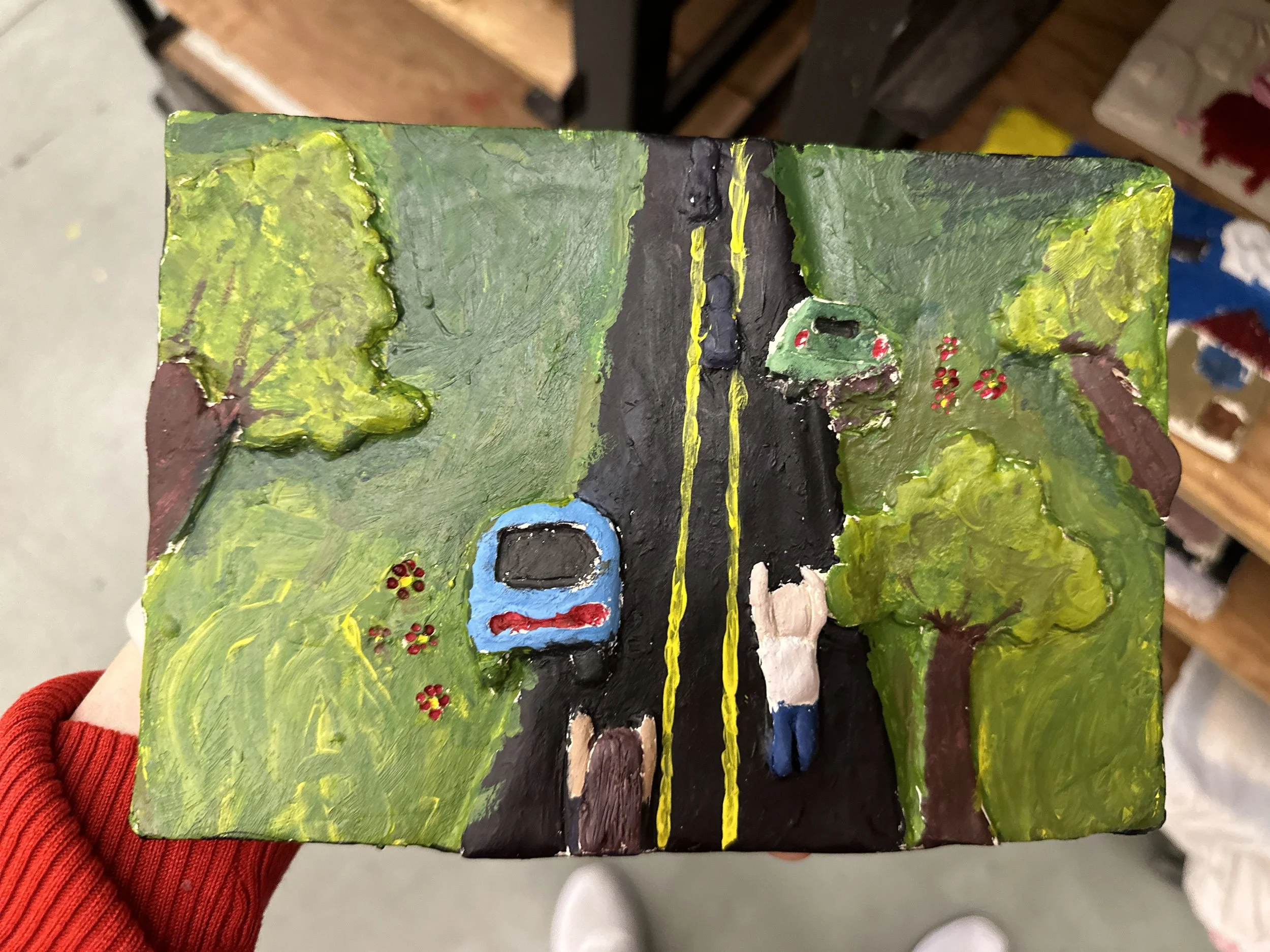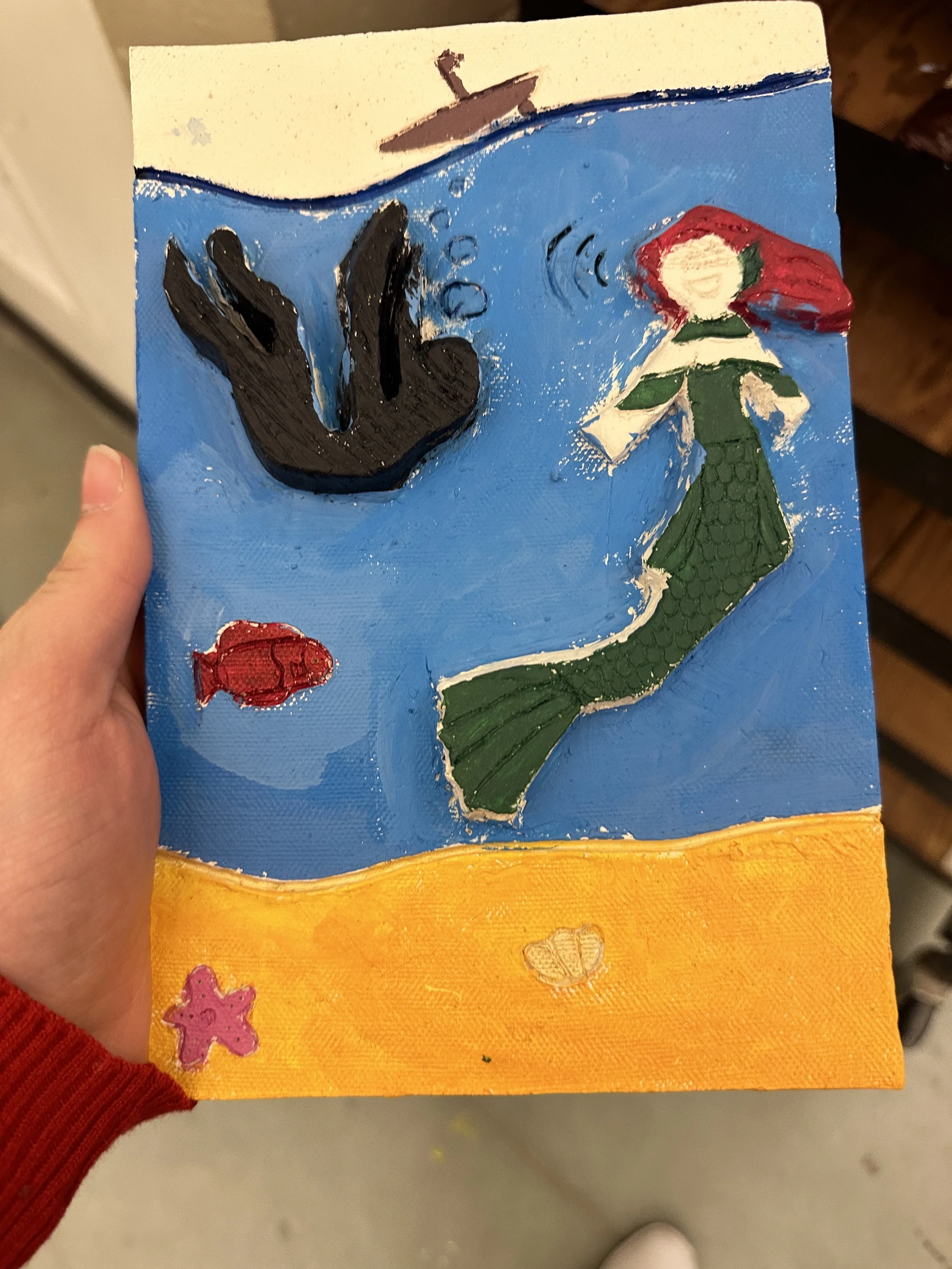 The second lesson I implemented was of my own making, and the medium was clay. The students were making additive relief clay sculptures that retold a fairy tale with a twist. This focused on strengthening students' creative thinking skills, and additive technique in clay. I was really excited about this lesson because it was the first I had written and implemented in a classroom, and I had learned a lot from my last lesson.